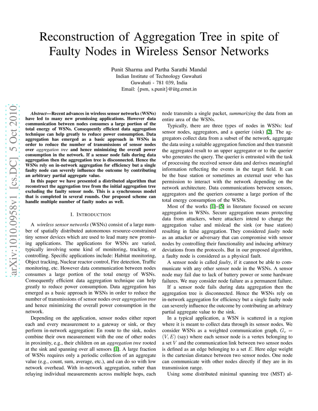 Reconstruction of Aggregation Tree in spite of Faulty Nodes in Wireless