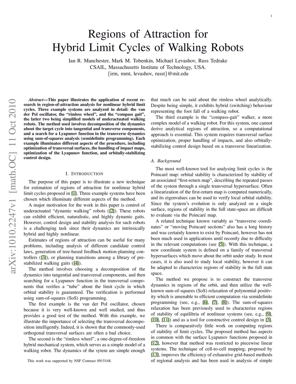 Regions of Attraction for Hybrid Limit Cycles of Walking Robots