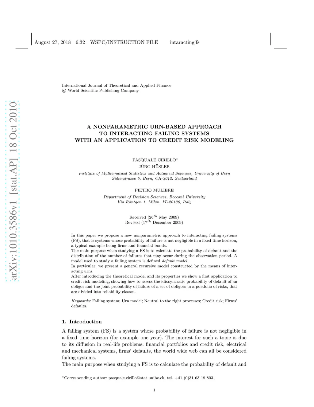 In this paper we propose a new nonparametric approach to interacting failing systems (FS), that is systems whose probability of failure is not negligible in a fixed time horizon, a typical example being firms and financial bonds. The main purpose when studying a FS is to calculate the probability of default and the distribution of the number of failures that may occur during the observation period. A model used to study a failing system is defined default model. In particular, we present a general recursive model constructed by the means of inter- acting urns. After introducing the theoretical model and its properties we show a first application to credit risk modeling, showing how to assess the idiosyncratic probability of default of an obligor and the joint probability of failure of a set of obligors in a portfolio of risks, that are divided into reliability classes.