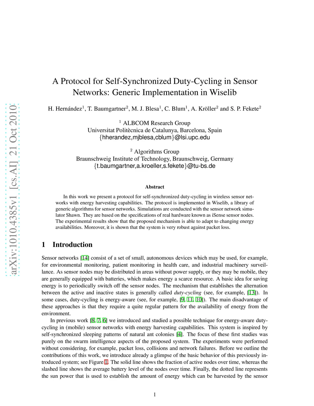 A Protocol for Self-Synchronized Duty-Cycling in Sensor Networks: