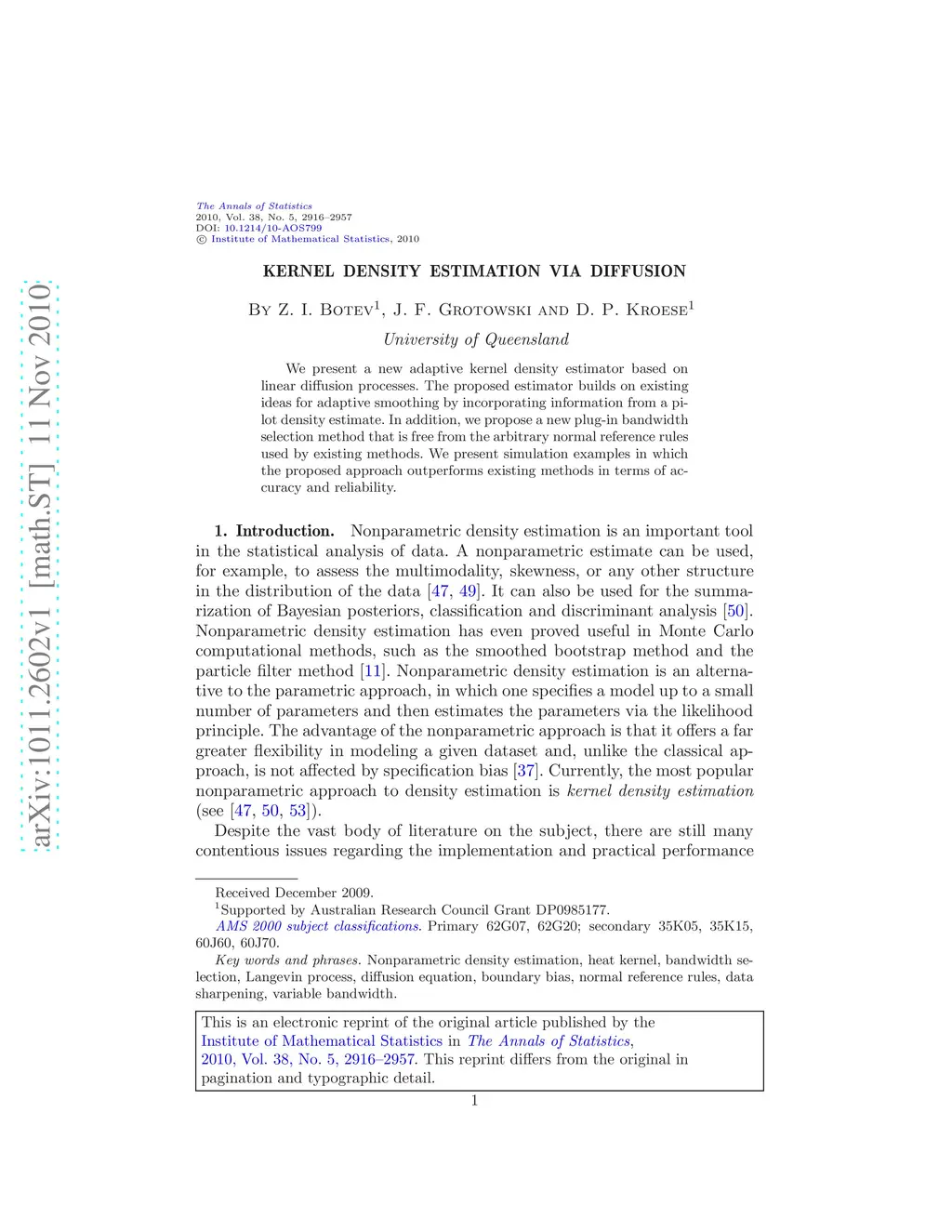 Kernel density estimation via diffusion