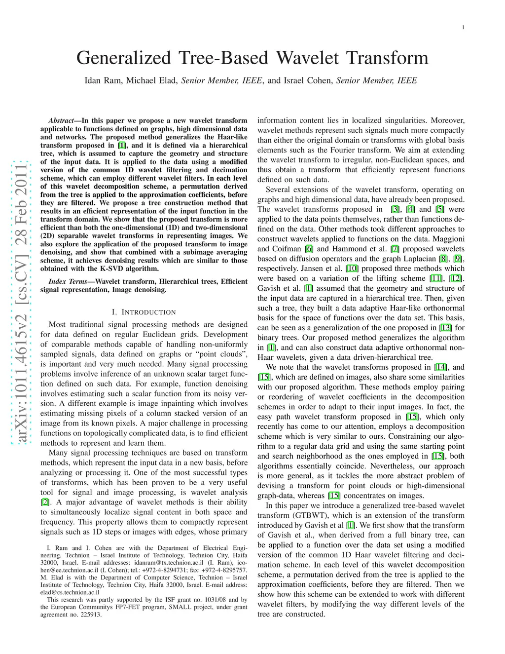 In this paper we propose a new wavelet transform applicable to functions defined on graphs, high dimensional data and networks. The proposed method generalizes the Haar-like transform proposed in [1], and it is defined via a hierarchical tree, which is assumed to capture the geometry and structure of the input data. It is applied to the data using a modified version of the common one-dimensional (1D) wavelet filtering and decimation scheme, which can employ different wavelet filters. In each level of this wavelet decomposition scheme, a permutation derived from the tree is applied to the approximation coefficients, before they are filtered. We propose a tree construction method that results in an efficient representation of the input function in the transform domain. We show that the proposed transform is more efficient than both the 1D and two-dimensional (2D) separable wavelet transforms in representing images. We also explore the application of the proposed transform to image denoising, and show that combined with a subimage averaging scheme, it achieves denoising results which are similar to those obtained with the K-SVD algorithm.