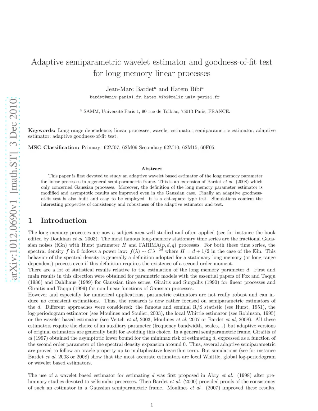 This paper is first devoted to study an adaptive wavelet based estimator of the long memory parameter for linear processes in a general semi-parametric frame. This is an extension of Bardet {\it et al.} (2008) which only concerned Gaussian processes. Moreover, the definition of the long memory parameter estimator is modified and asymptotic results are improved even in the Gaussian case. Finally an adaptive goodness-of-fit test is also built and easy to be employed: it is a chi-square type test. Simulations confirm the interesting properties of consistency and robustness of the adaptive estimator and test.