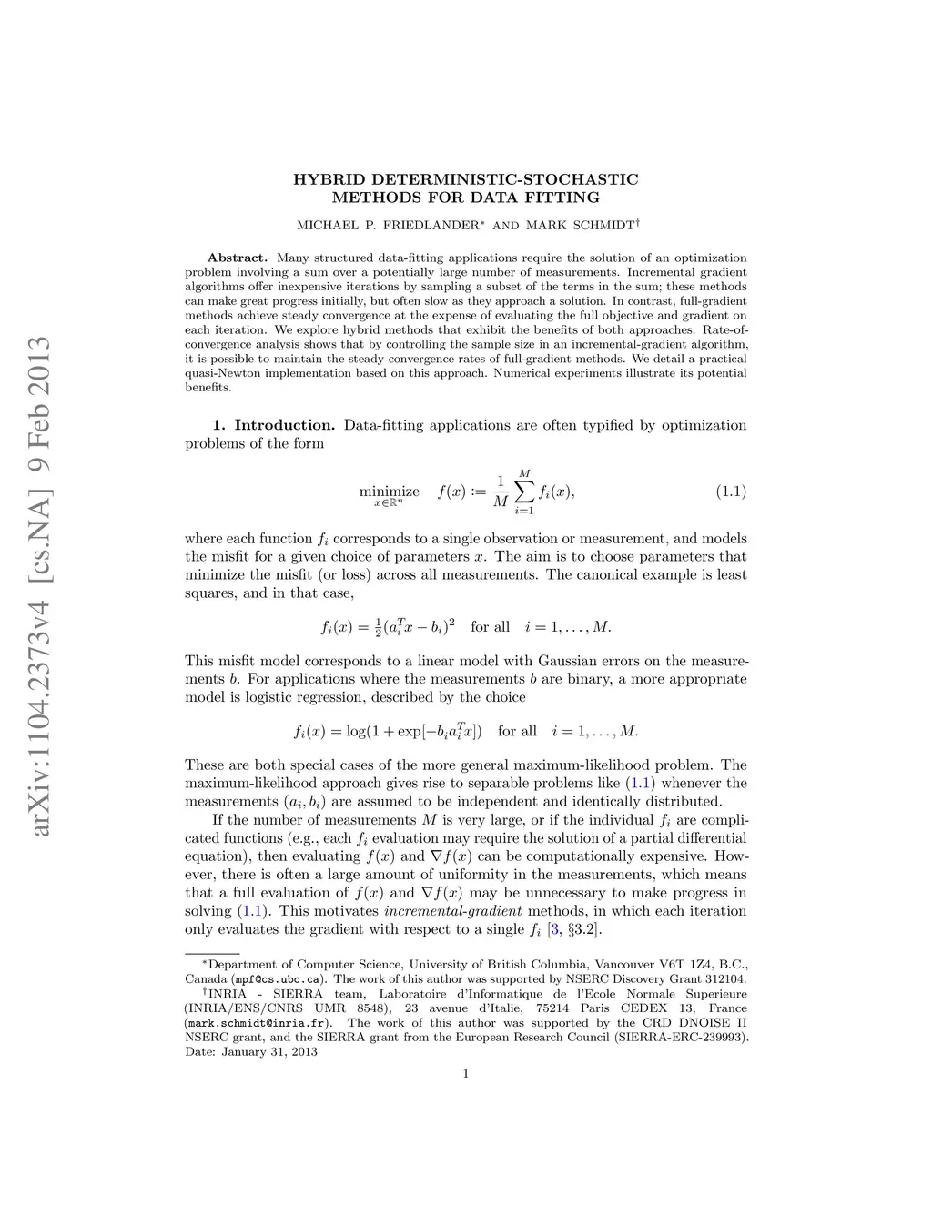 Hybrid Deterministic-Stochastic Methods for Data Fitting