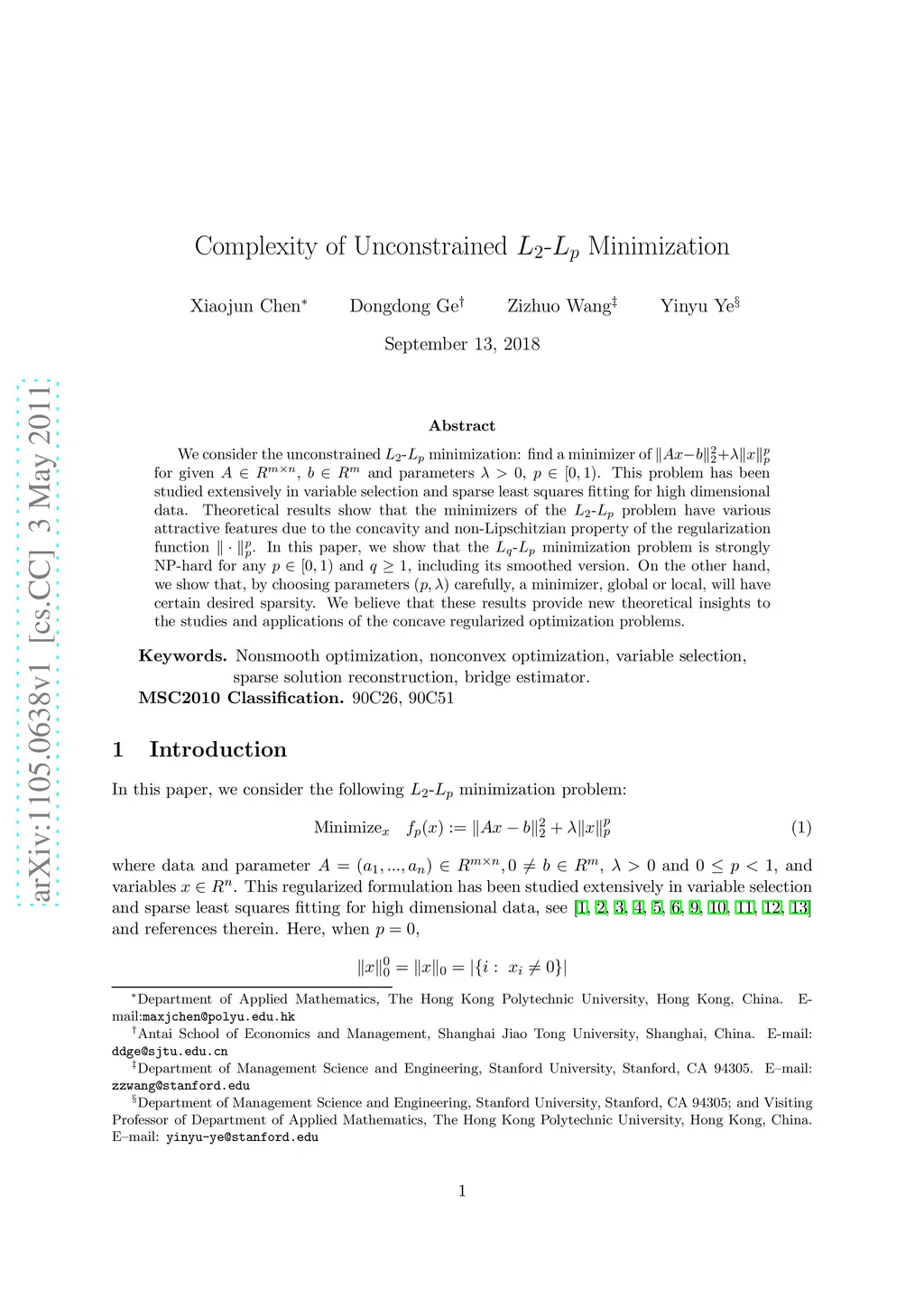 We consider the unconstrained - minimization: find a minimizer of for given , and parameters , . This problem has been studied extensively in variable selection and sparse least squares fitting for high dimensional data. Theoretical results show that the minimizers of the - problem have various attractive features due to the concavity and non-Lipschitzian property of the regularization function . In this paper, we show that the - minimization problem is strongly NP-hard for any and , including its smoothed version. On the other hand, we show that, by choosing parameters carefully, a minimizer, global or local, will have certain desired sparsity. We believe that these results provide new theoretical insights to the studies and applications of the concave regularized optimization problems.