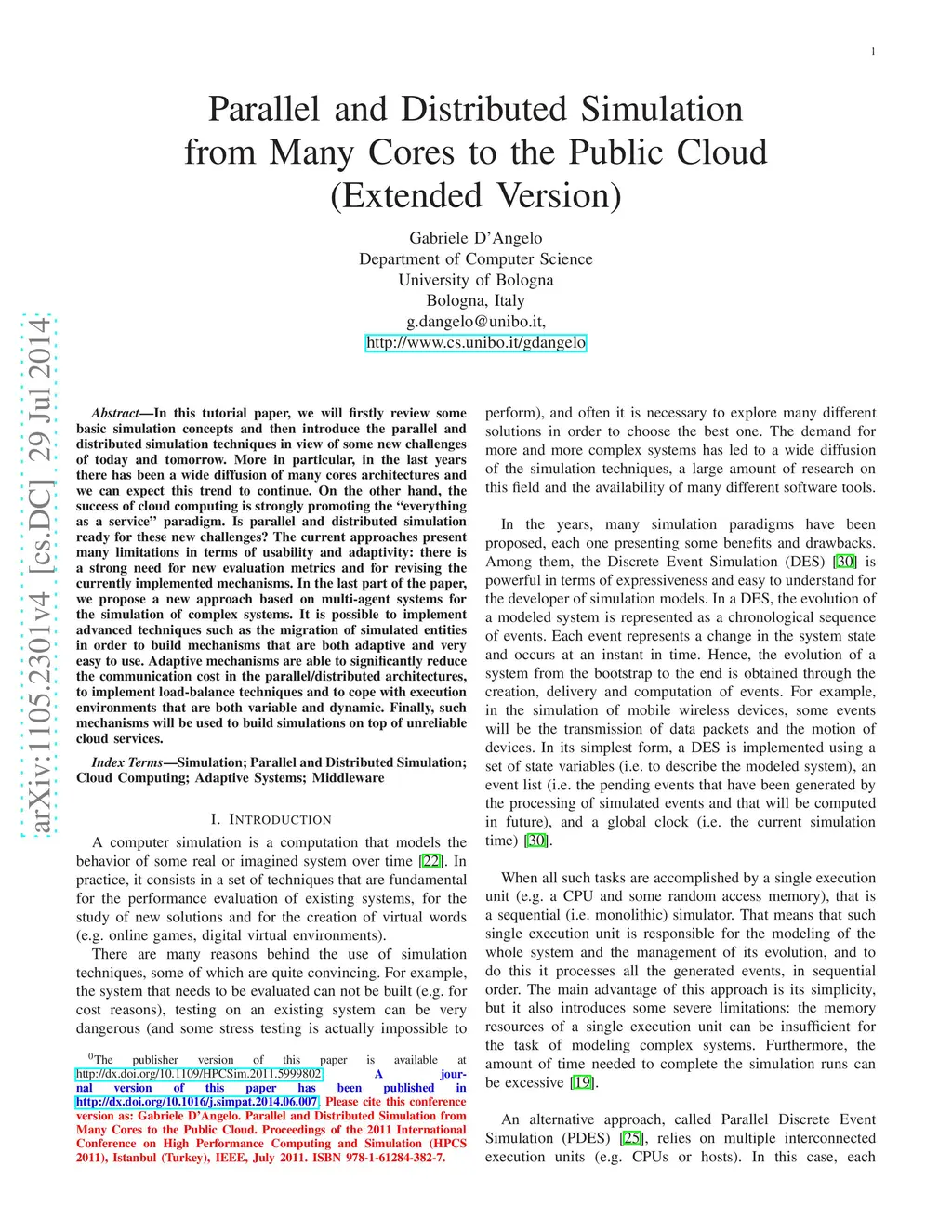 Parallel and Distributed Simulation from Many Cores to the Public Cloud