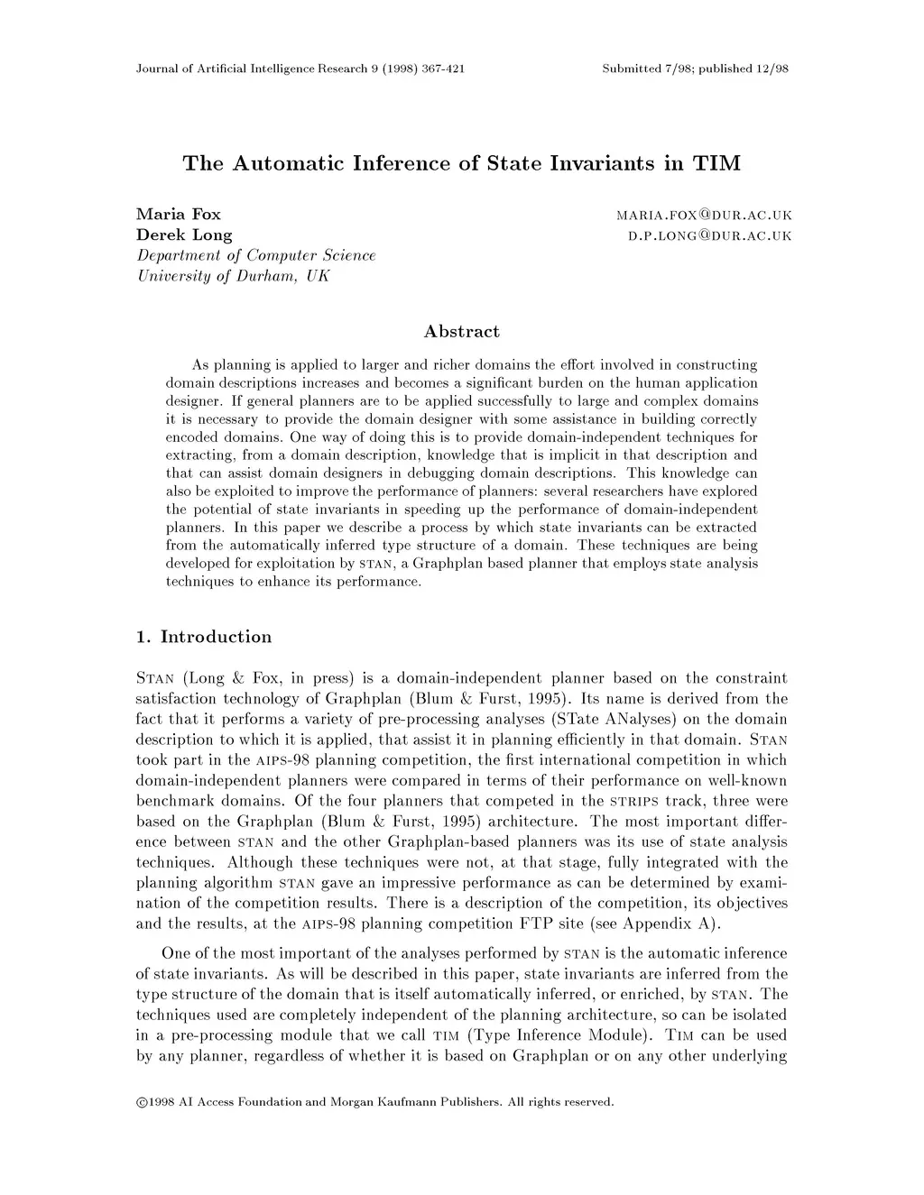As planning is applied to larger and richer domains the effort involved in constructing domain descriptions increases and becomes a significant burden on the human application designer. If general planners are to be applied successfully to large and complex domains it is necessary to provide the domain designer with some assistance in building correctly encoded domains. One way of doing this is to provide domain-independent techniques for extracting, from a domain description, knowledge that is implicit in that description and that can assist domain designers in debugging domain descriptions. This knowledge can also be exploited to improve the performance of planners: several researchers have explored the potential of state invariants in speeding up the performance of domain-independent planners. In this paper we describe a process by which state invariants can be extracted from the automatically inferred type structure of a domain. These techniques are being developed for exploitation by STAN, a Graphplan based planner that employs state analysis techniques to enhance its performance.