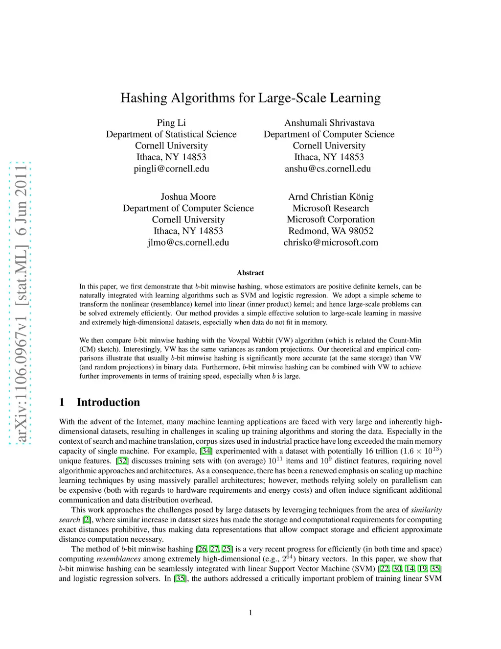 Hashing Algorithms for Large-Scale Learning
