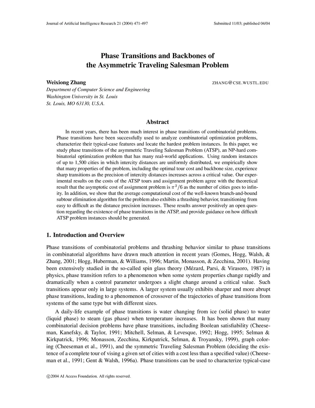 Phase Transitions and Backbones of the Asymmetric Traveling Salesman