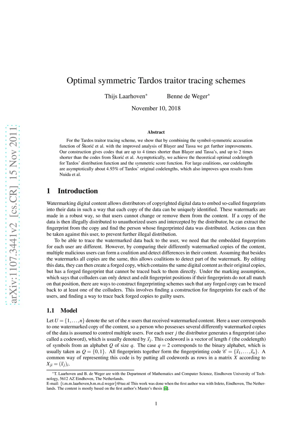 Designs, Codes and Cryptography (DCC), 2011