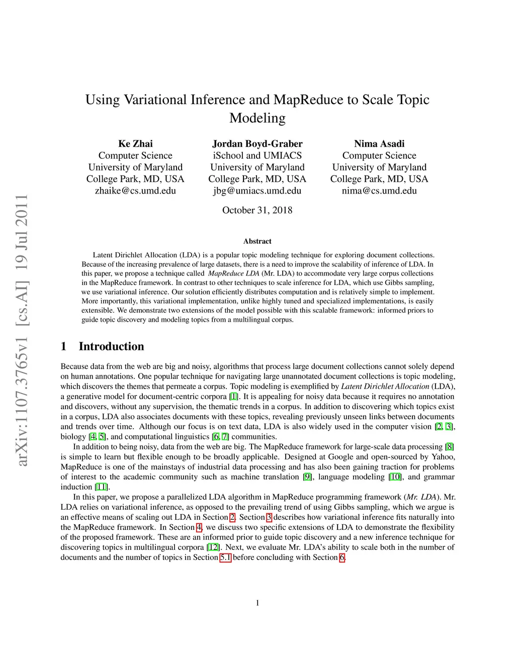 Using Variational Inference and MapReduce to Scale Topic Modeling