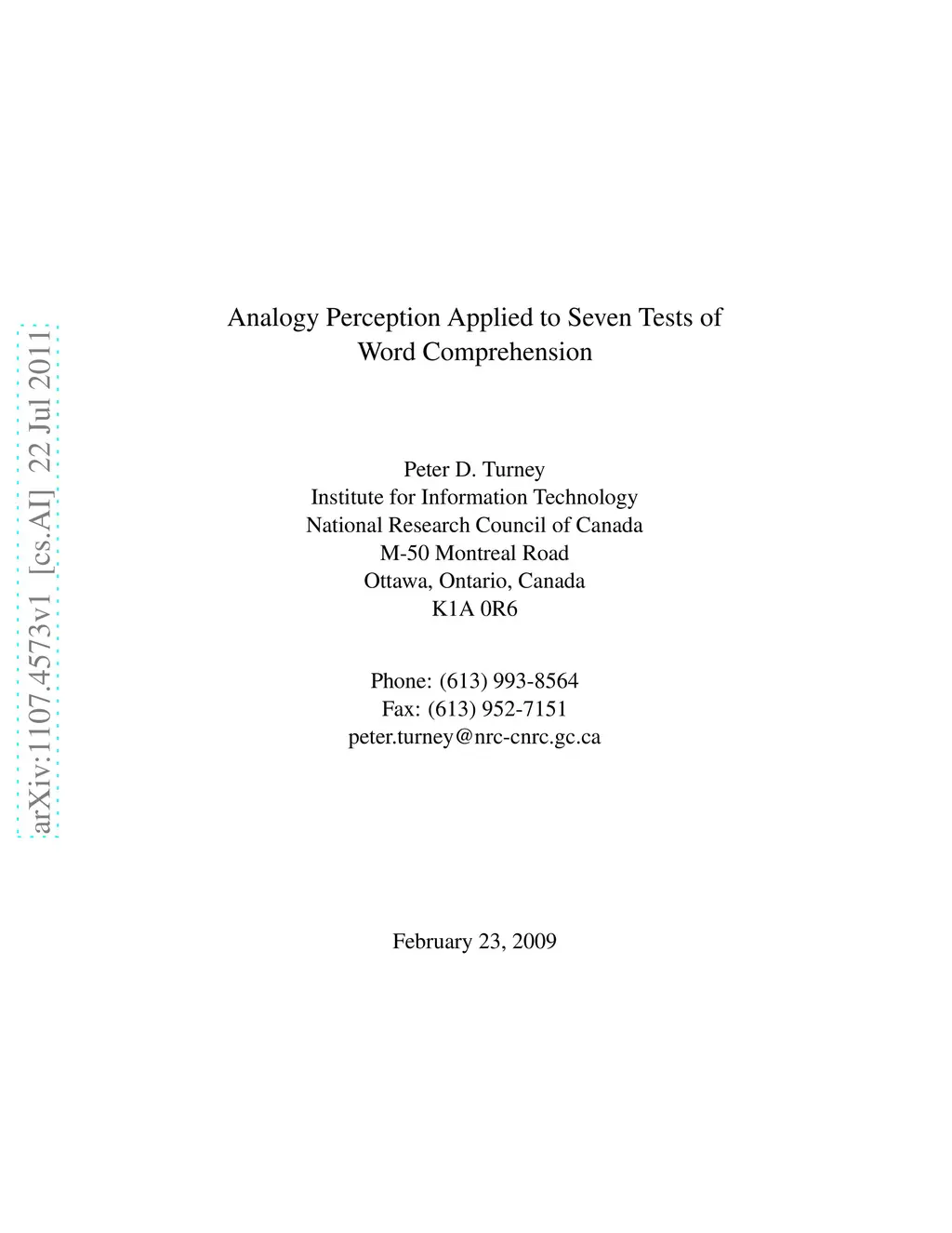 It has been argued that analogy is the core of cognition. In AI research, algorithms for analogy are often limited by the need for hand-coded high-level representations as input. An alternative approach is to use high-level perception, in which high-level representations are automatically generated from raw data. Analogy perception is the process of recognizing analogies using high-level perception. We present PairClass, an algorithm for analogy perception that recognizes lexical proportional analogies using representations that are automatically generated from a large corpus of raw textual data. A proportional analogy is an analogy of the form A:B::C:D, meaning "A is to B as C is to D". A lexical proportional analogy is a proportional analogy with words, such as carpenter:wood::mason:stone. PairClass represents the semantic relations between two words using a high-dimensional feature vector, in which the elements are based on frequencies of patterns in the corpus. PairClass recognizes analogies by applying standard supervised machine learning techniques to the feature vectors. We show how seven different tests of word comprehension can be framed as problems of analogy perception and we then apply PairClass to the seven resulting sets of analogy perception problems. We achieve competitive results on all seven tests. This is the first time a uniform approach has handled such a range of tests of word comprehension.