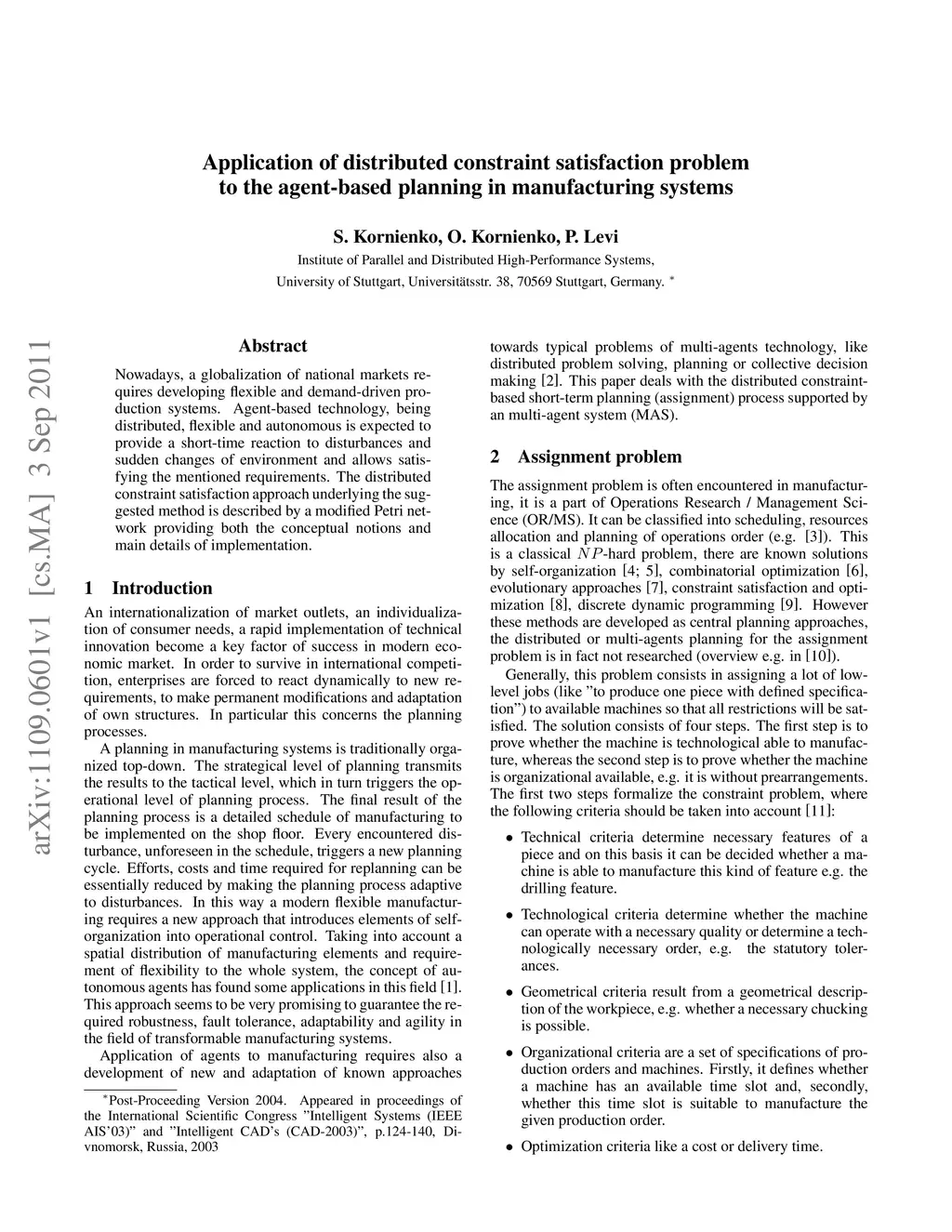 Nowadays, a globalization of national markets requires developing flexible and demand-driven production systems. Agent-based technology, being distributed, flexible and autonomous is expected to provide a short-time reaction to disturbances and sudden changes of environment and allows satisfying the mentioned requirements. The distributed constraint satisfaction approach underlying the suggested method is described by a modified Petri network providing both the conceptual notions and main details of implementation.