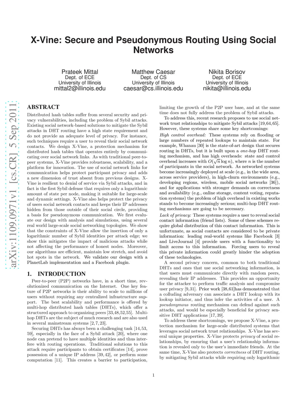 X-Vine: Secure and Pseudonymous Routing Using Social Networks