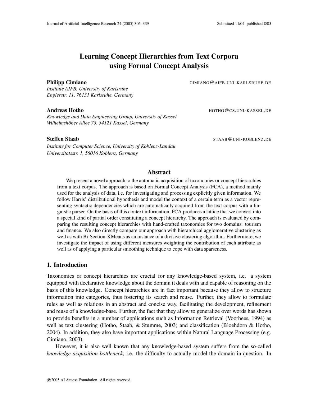Learning Concept Hierarchies from Text Corpora using Formal Concept