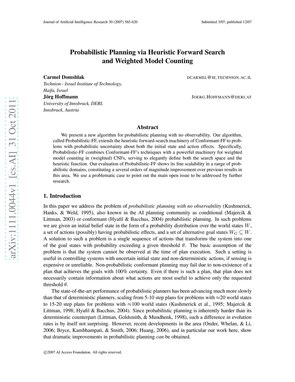 Probabilistic Planning via Heuristic Forward Search and Weighted Model