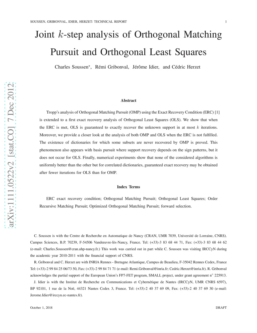 Tropp's analysis of Orthogonal Matching Pursuit (OMP) using the Exact Recovery Condition (ERC) is extended to a first exact recovery analysis of Orthogonal Least Squares (OLS). We show that when the ERC is met, OLS is guaranteed to exactly recover the unknown support in at most k iterations. Moreover, we provide a closer look at the analysis of both OMP and OLS when the ERC is not fulfilled. The existence of dictionaries for which some subsets are never recovered by OMP is proved. This phenomenon also appears with basis pursuit where support recovery depends on the sign patterns, but it does not occur for OLS. Finally, numerical experiments show that none of the considered algorithms is uniformly better than the other but for correlated dictionaries, guaranteed exact recovery may be obtained after fewer iterations for OLS than for OMP.