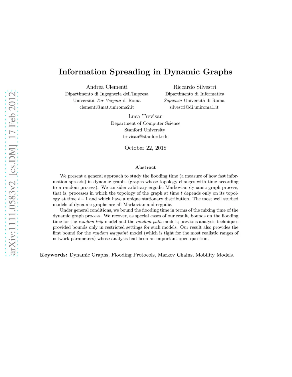 We present a general approach to study the flooding time (a measure of how fast information spreads) in dynamic graphs (graphs whose topology changes with time according to a random process). We consider arbitrary converging Markovian dynamic graph process, that is, processes in which the topology of the graph at time depends only on its topology at time and which have a unique stationary distribution. The most well studied models of dynamic graphs are all Markovian and converging. Under general conditions, we bound the flooding time in terms of the mixing time of the dynamic graph process. We recover, as special cases of our result, bounds on the flooding time for the \emph{random trip} model and the \emph{random path} models; previous analysis techniques provided bounds only in restricted settings for such models. Our result also provides the first bound for the \emph{random waypoint} model (which is tight for certain ranges of parameters) whose analysis had been an important open question.