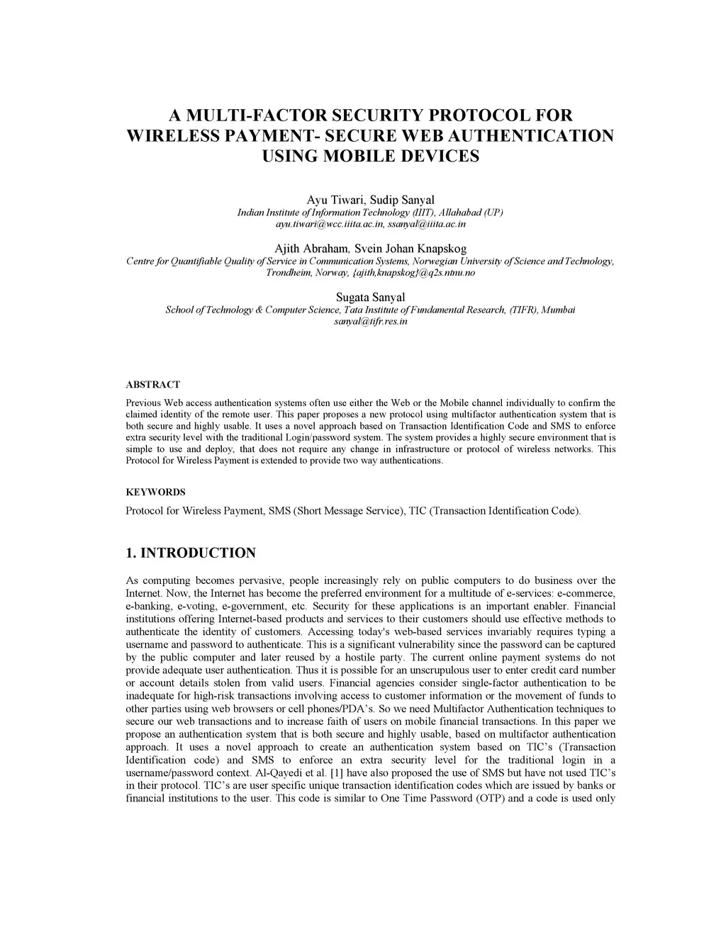 A Multi-Factor Security Protocol for Wireless Payment - Secure Web