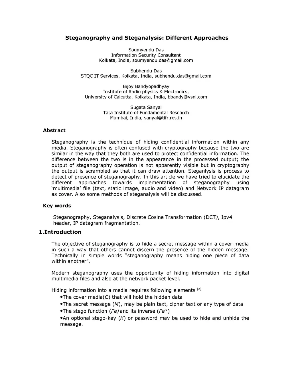 Steganography is the technique of hiding confidential information within any media. Steganography is often confused with cryptography because the two are similar in the way that they both are used to protect confidential information. The difference between the two is in the appearance in the processed output; the output of steganography operation is not apparently visible but in cryptography the output is scrambled so that it can draw attention. Steganlysis is process to detect of presence of steganography. In this article we have tried to elucidate the different approaches towards implementation of steganography using 'multimedia' file (text, static image, audio and video) and Network IP datagram as cover. Also some methods of steganalysis will be discussed.