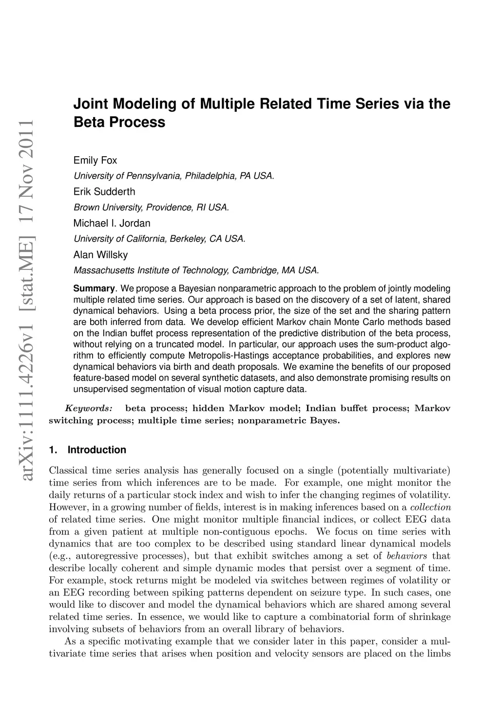 Joint Modeling of Multiple Related Time Series via the Beta Process