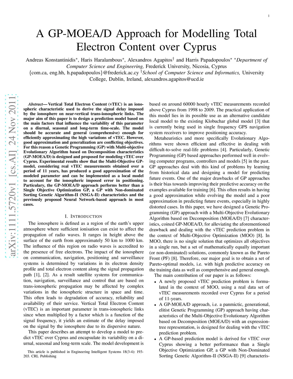 A GP-MOEA/D Approach for Modelling Total Electron Content over Cyprus
