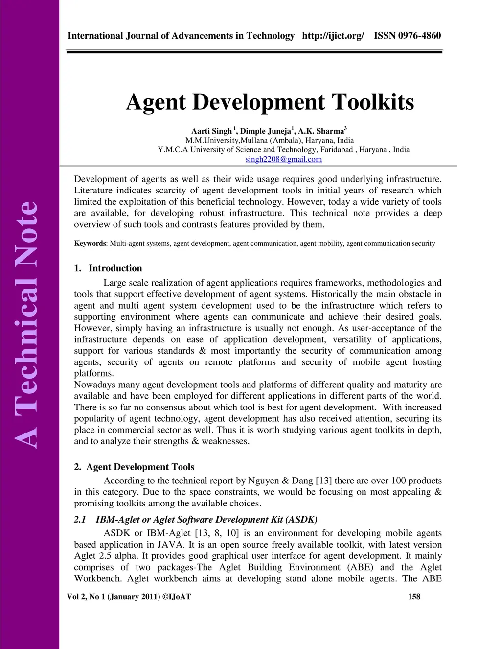 Development of agents as well as their wide usage requires good underlying infrastructure. Literature indicates scarcity of agent development tools in initial years of research which limited the exploitation of this beneficial technology. However, today a wide variety of tools are available, for developing robust infrastructure. This technical note provides a deep overview of such tools and contrasts features provided by them.