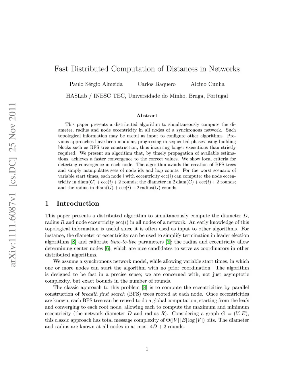This paper presents a distributed algorithm to simultaneously compute the diameter, radius and node eccentricity in all nodes of a synchronous network. Such topological information may be useful as input to configure other algorithms. Previous approaches have been modular, progressing in sequential phases using building blocks such as BFS tree construction, thus incurring longer executions than strictly required. We present an algorithm that, by timely propagation of available estimations, achieves a faster convergence to the correct values. We show local criteria for detecting convergence in each node. The algorithm avoids the creation of BFS trees and simply manipulates sets of node ids and hop counts. For the worst scenario of variable start times, each node i with eccentricity ecc(i) can compute: the node eccentricity in diam(G)+ecc(i)+2 rounds; the diameter in 2*diam(G)+ecc(i)+2 rounds; and the radius in diam(G)+ecc(i)+2*radius(G) rounds.