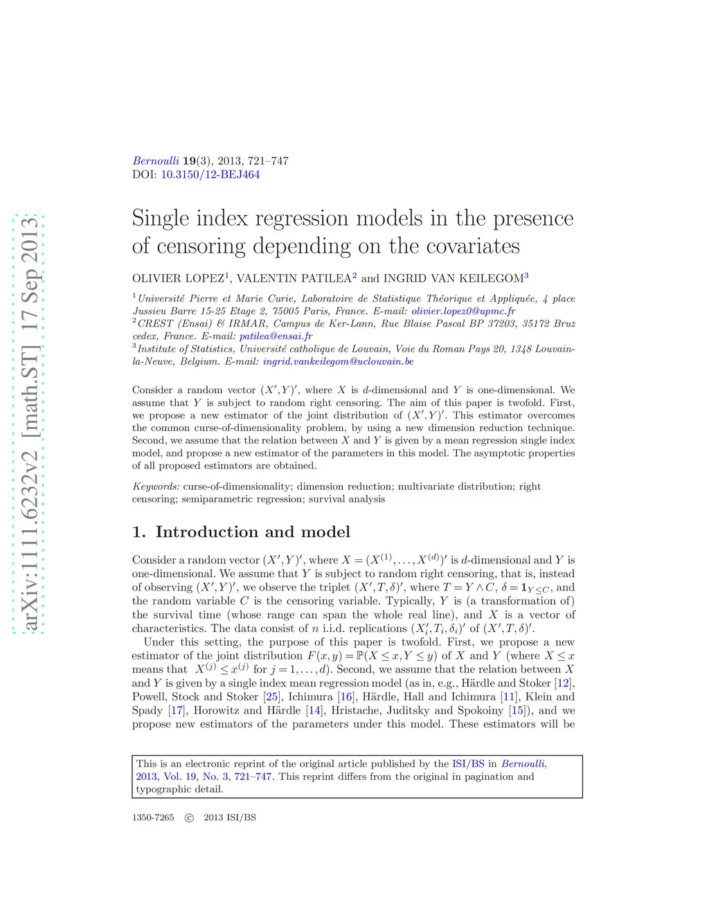 Consider a random vector (X',Y)', where X is d-dimensional and Y is one-dimensional. We assume that Y is subject to random right censoring. The aim of this paper is twofold. First, we propose a new estimator of the joint distribution of (X',Y)'. This estimator overcomes the common curse-of-dimensionality problem, by using a new dimension reduction technique. Second, we assume that the relation between X and Y is given by a mean regression single index model, and propose a new estimator of the parameters in this model. The asymptotic properties of all proposed estimators are obtained.
