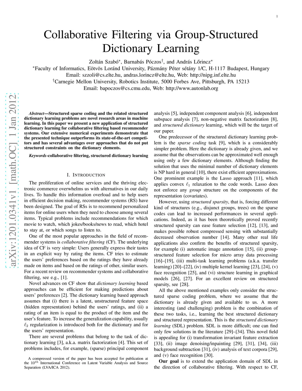 Collaborative Filtering via Group-Structured Dictionary Learning