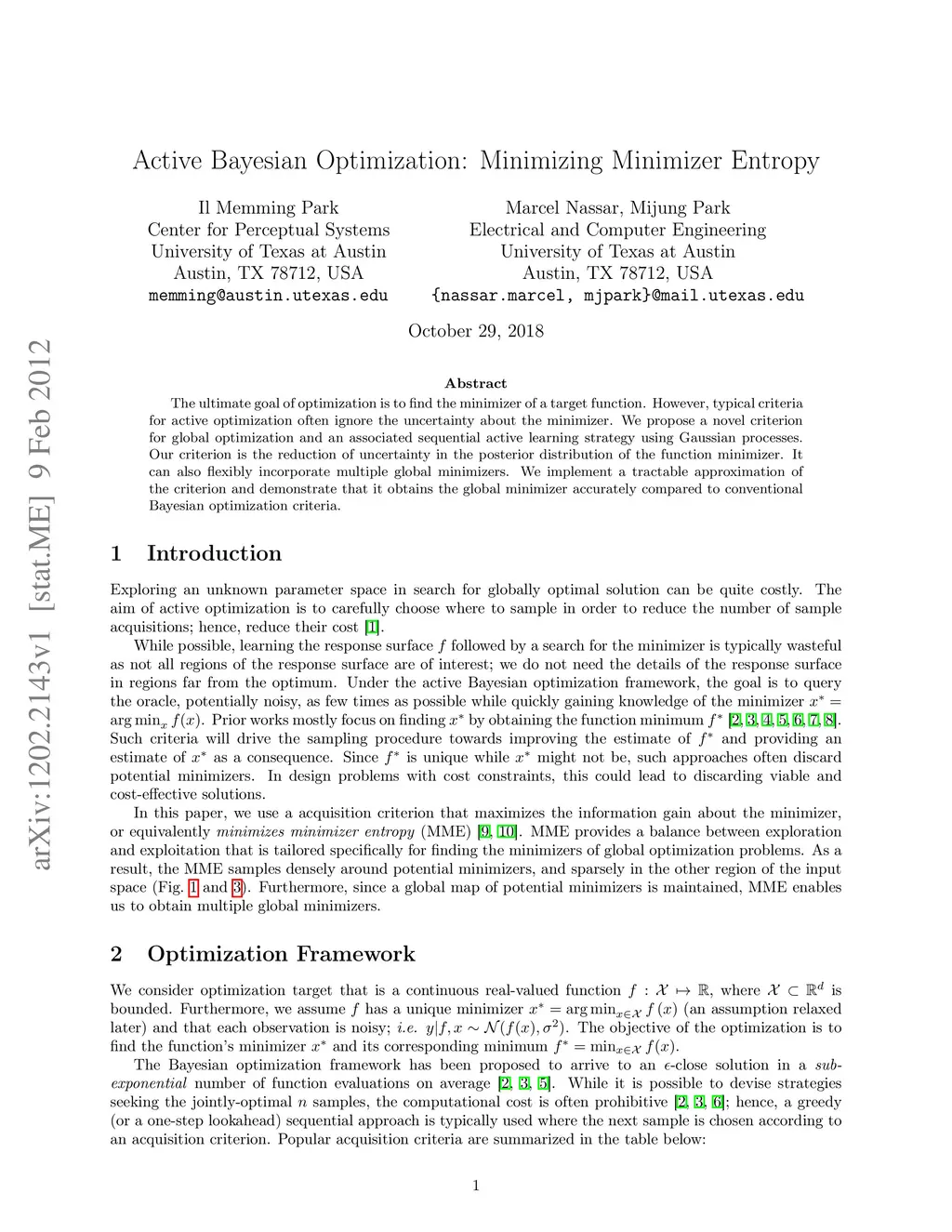 Active Bayesian Optimization: Minimizing Minimizer Entropy