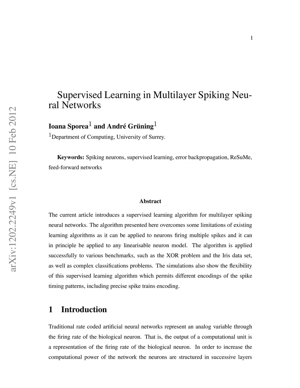 Supervised Learning in Multilayer Spiking Neural Networks