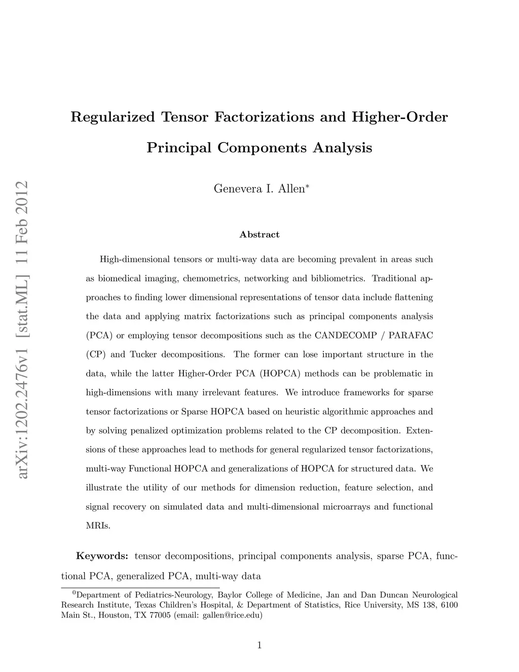 Regularized Tensor Factorizations and Higher-Order Principal Components