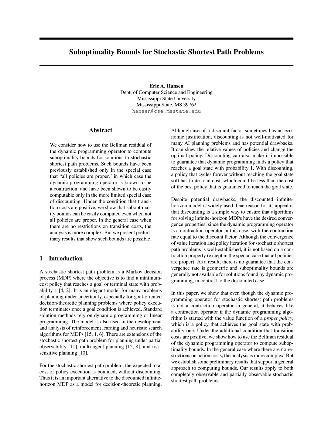 We consider how to use the Bellman residual of the dynamic programming operator to compute suboptimality bounds for solutions to stochastic shortest path problems. Such bounds have been previously established only in the special case that "all policies are proper," in which case the dynamic programming operator is known to be a contraction, and have been shown to be easily computable only in the more limited special case of discounting. Under the condition that transition costs are positive, we show that suboptimality bounds can be easily computed even when not all policies are proper. In the general case when there are no restrictions on transition costs, the analysis is more complex. But we present preliminary results that show such bounds are possible.