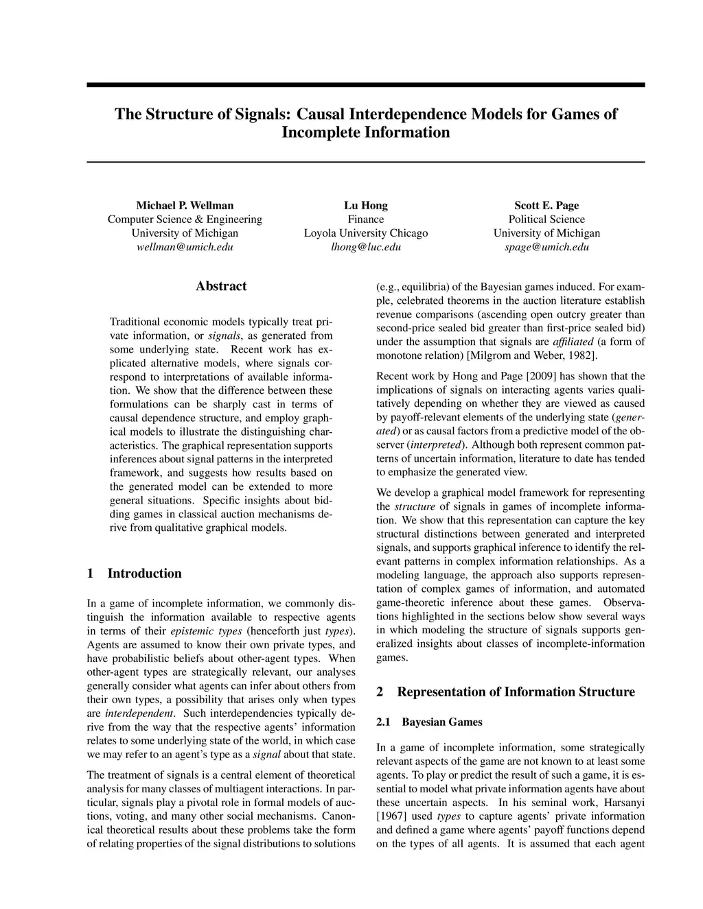 Traditional economic models typically treat private information, or signals, as generated from some underlying state. Recent work has explicated alternative models, where signals correspond to interpretations of available information. We show that the difference between these formulations can be sharply cast in terms of causal dependence structure, and employ graphical models to illustrate the distinguishing characteristics. The graphical representation supports inferences about signal patterns in the interpreted framework, and suggests how results based on the generated model can be extended to more general situations. Specific insights about bidding games in classical auction mechanisms derive from qualitative graphical models.