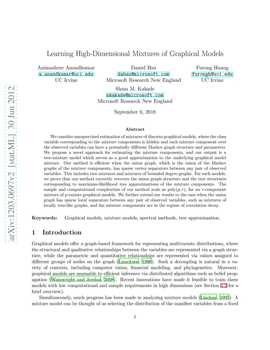 We consider unsupervised estimation of mixtures of discrete graphical models, where the class variable corresponding to the mixture components is hidden and each mixture component over the observed variables can have a potentially different Markov graph structure and parameters. We propose a novel approach for estimating the mixture components, and our output is a tree-mixture model which serves as a good approximation to the underlying graphical model mixture. Our method is efficient when the union graph, which is the union of the Markov graphs of the mixture components, has sparse vertex separators between any pair of observed variables. This includes tree mixtures and mixtures of bounded degree graphs. For such models, we prove that our method correctly recovers the union graph structure and the tree structures corresponding to maximum-likelihood tree approximations of the mixture components. The sample and computational complexities of our method scale as , for an -component mixture of -variate graphical models. We further extend our results to the case when the union graph has sparse local separators between any pair of observed variables, such as mixtures of locally tree-like graphs, and the mixture components are in the regime of correlation decay.