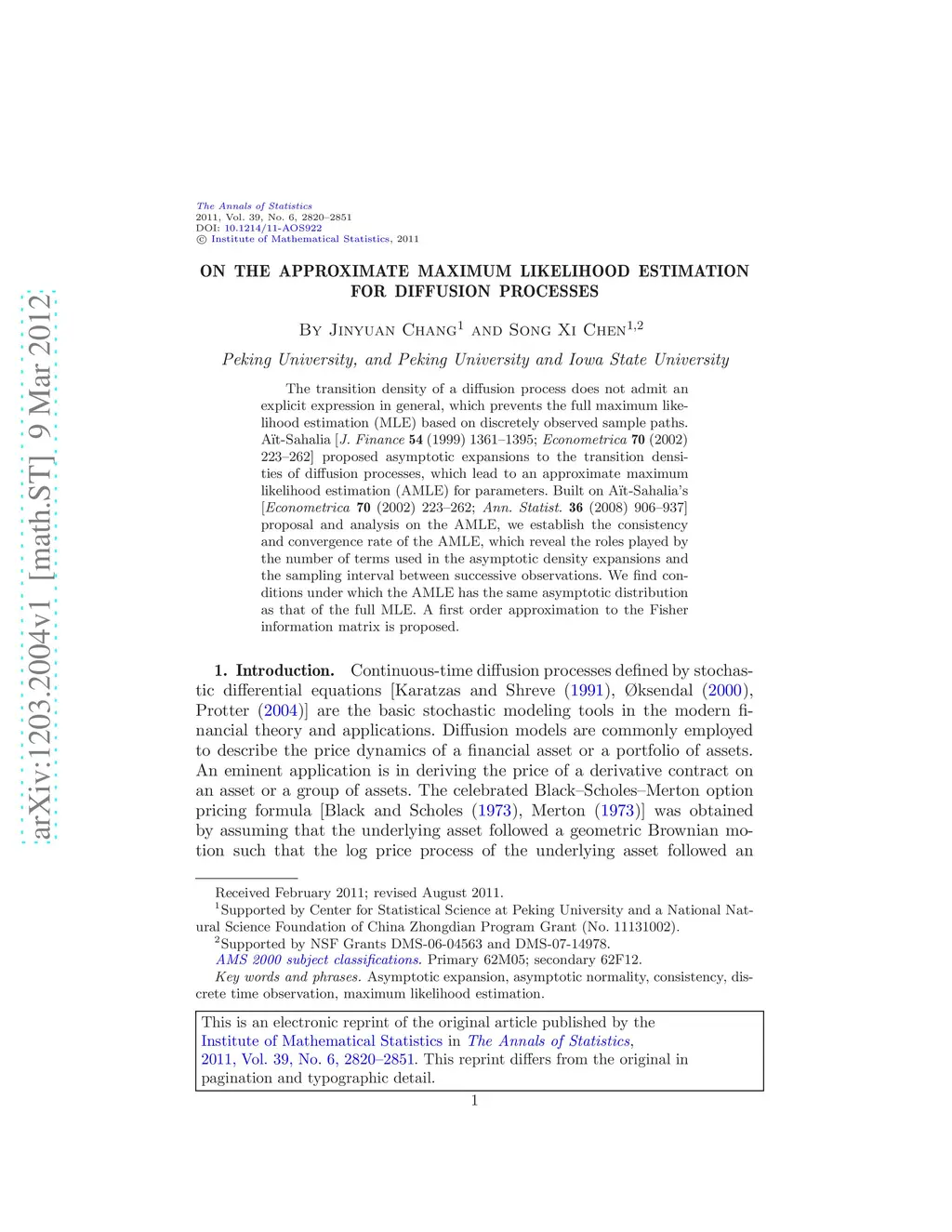 The transition density of a diffusion process does not admit an explicit expression in general, which prevents the full maximum likelihood estimation (MLE) based on discretely observed sample paths. A\"{\i}t-Sahalia [J. Finance 54 (1999) 1361--1395; Econometrica 70 (2002) 223--262] proposed asymptotic expansions to the transition densities of diffusion processes, which lead to an approximate maximum likelihood estimation (AMLE) for parameters. Built on A\"{\i}t-Sahalia's [Econometrica 70 (2002) 223--262; Ann. Statist. 36 (2008) 906--937] proposal and analysis on the AMLE, we establish the consistency and convergence rate of the AMLE, which reveal the roles played by the number of terms used in the asymptotic density expansions and the sampling interval between successive observations. We find conditions under which the AMLE has the same asymptotic distribution as that of the full MLE. A first order approximation to the Fisher information matrix is proposed.