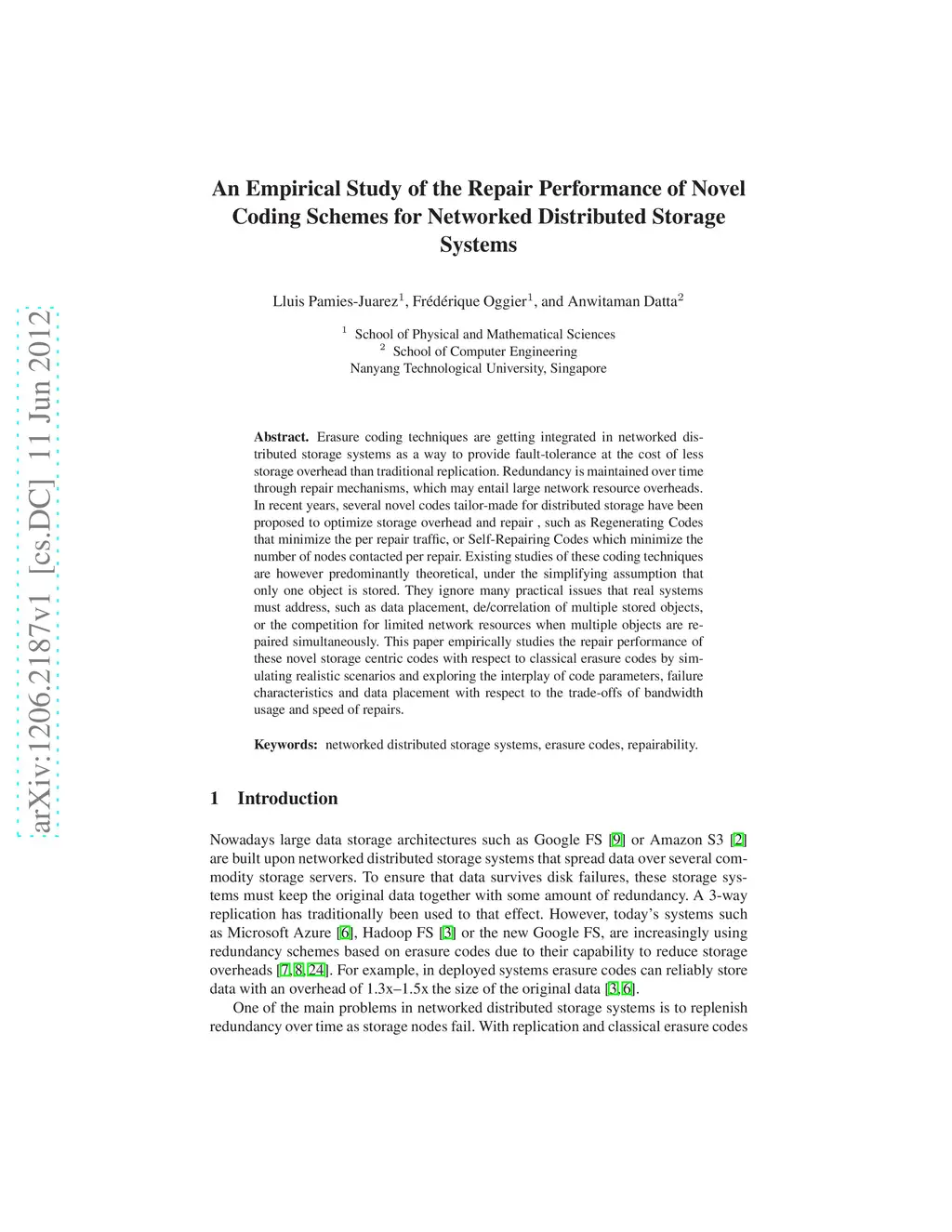 An Empirical Study of the Repair Performance of Novel Coding Schemes for