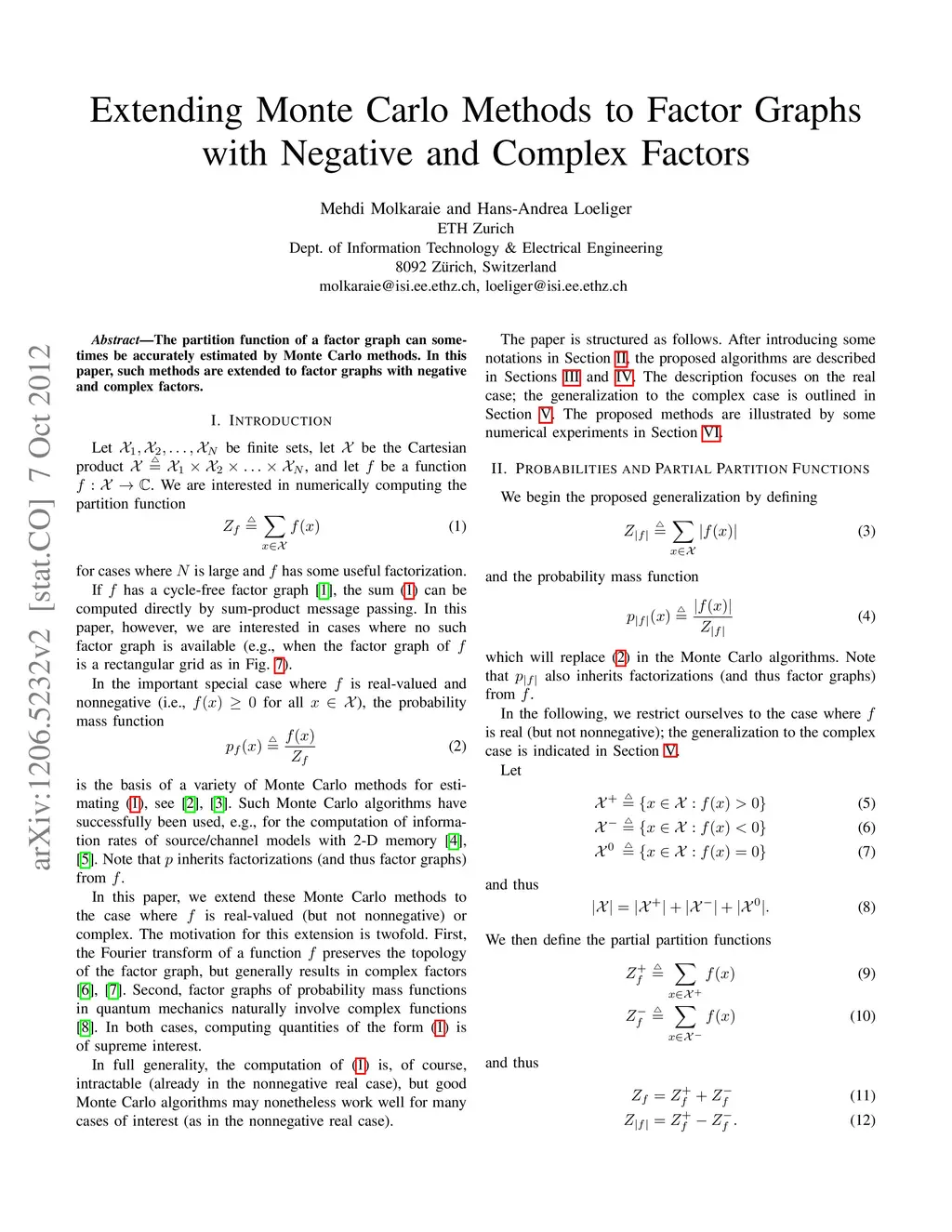 The partition function of a factor graph can sometimes be accurately estimated by Monte Carlo methods. In this paper, such methods are extended to factor graphs with negative and complex factors.