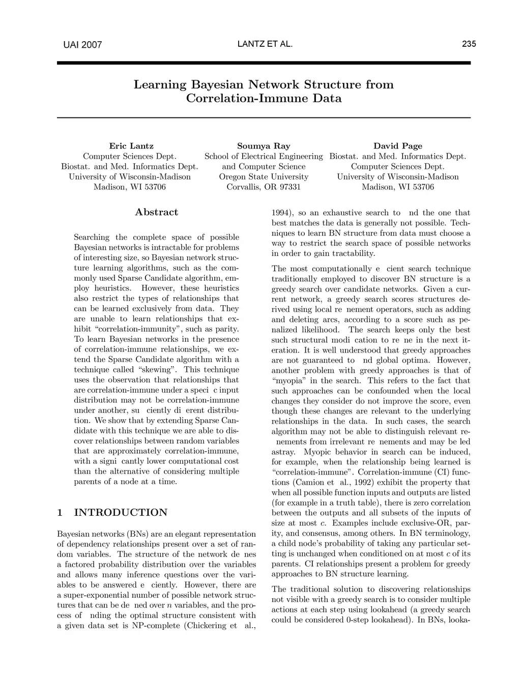 Searching the complete space of possible Bayesian networks is intractable for problems of interesting size, so Bayesian network structure learning algorithms, such as the commonly used Sparse Candidate algorithm, employ heuristics. However, these heuristics also restrict the types of relationships that can be learned exclusively from data. They are unable to learn relationships that exhibit "correlation-immunity", such as parity. To learn Bayesian networks in the presence of correlation-immune relationships, we extend the Sparse Candidate algorithm with a technique called "skewing". This technique uses the observation that relationships that are correlation-immune under a specific input distribution may not be correlation-immune under another, sufficiently different distribution. We show that by extending Sparse Candidate with this technique we are able to discover relationships between random variables that are approximately correlation-immune, with a significantly lower computational cost than the alternative of considering multiple parents of a node at a time.