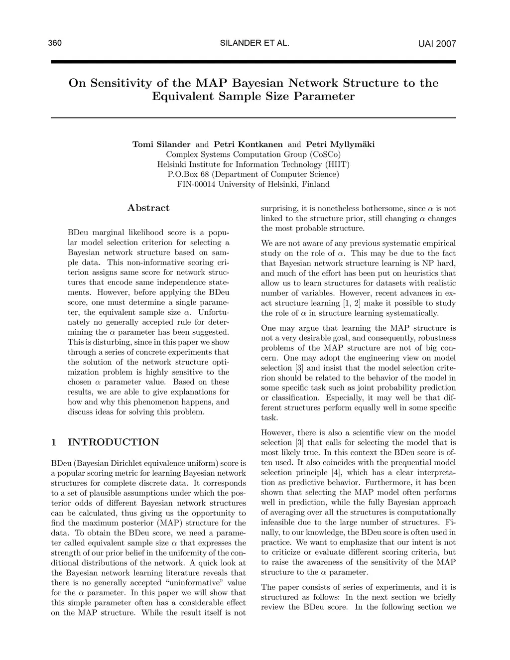BDeu marginal likelihood score is a popular model selection criterion for selecting a Bayesian network structure based on sample data. This non-informative scoring criterion assigns same score for network structures that encode same independence statements. However, before applying the BDeu score, one must determine a single parameter, the equivalent sample size alpha. Unfortunately no generally accepted rule for determining the alpha parameter has been suggested. This is disturbing, since in this paper we show through a series of concrete experiments that the solution of the network structure optimization problem is highly sensitive to the chosen alpha parameter value. Based on these results, we are able to give explanations for how and why this phenomenon happens, and discuss ideas for solving this problem.