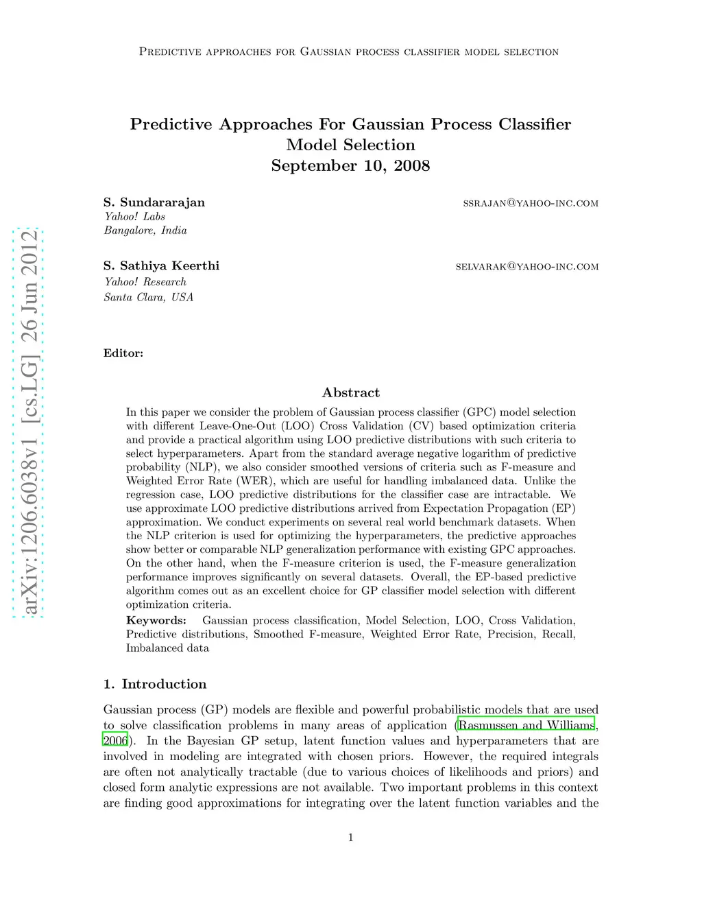 Predictive Approaches For Gaussian Process Classifier Model Selection