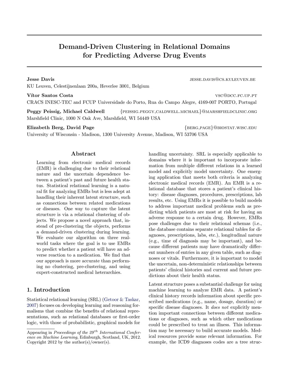 Demand-Driven Clustering in Relational Domains for Predicting Adverse