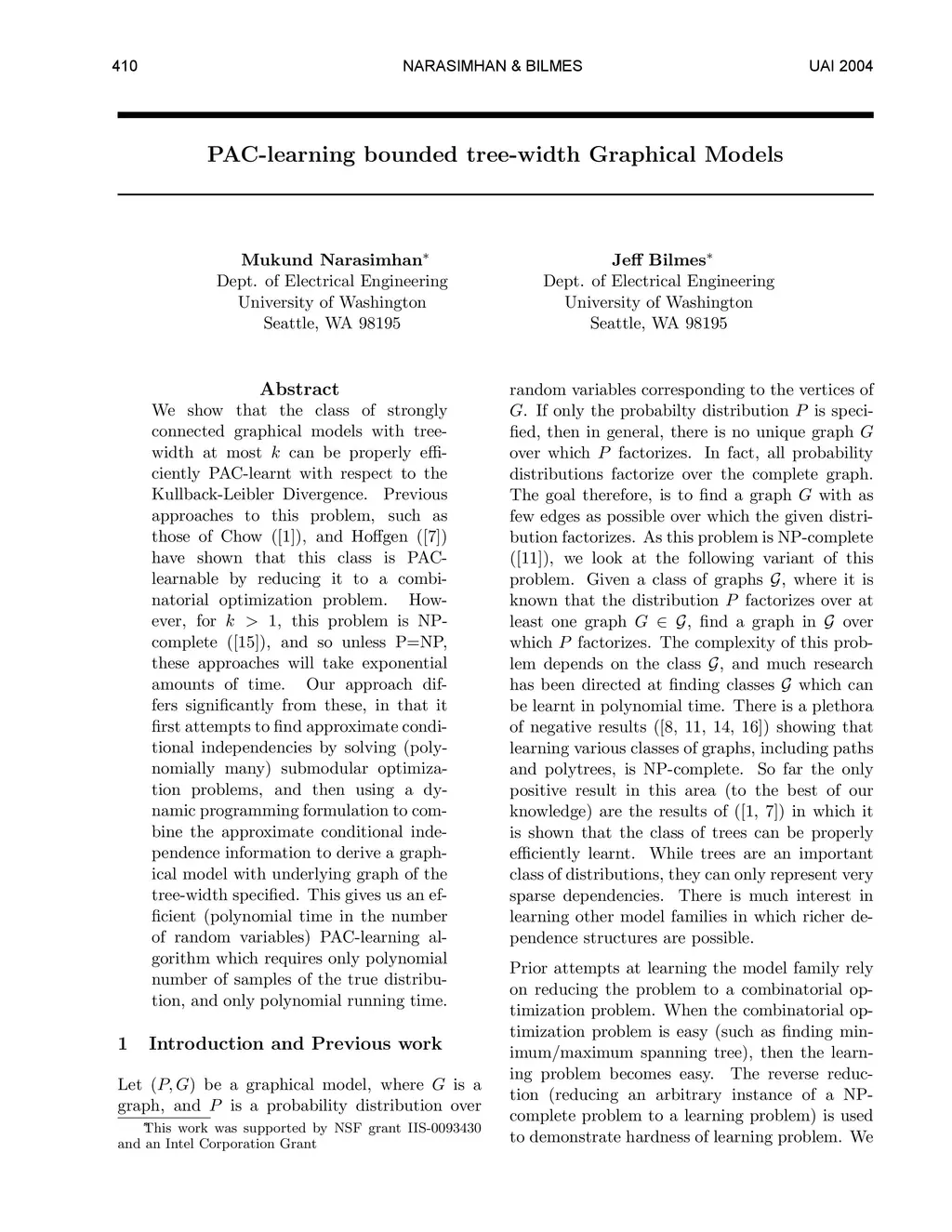 PAC-learning bounded tree-width Graphical Models