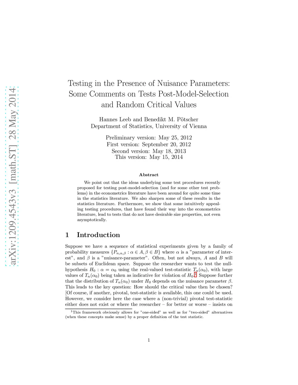 Testing in the Presence of Nuisance Parameters: Some Comments on Tests