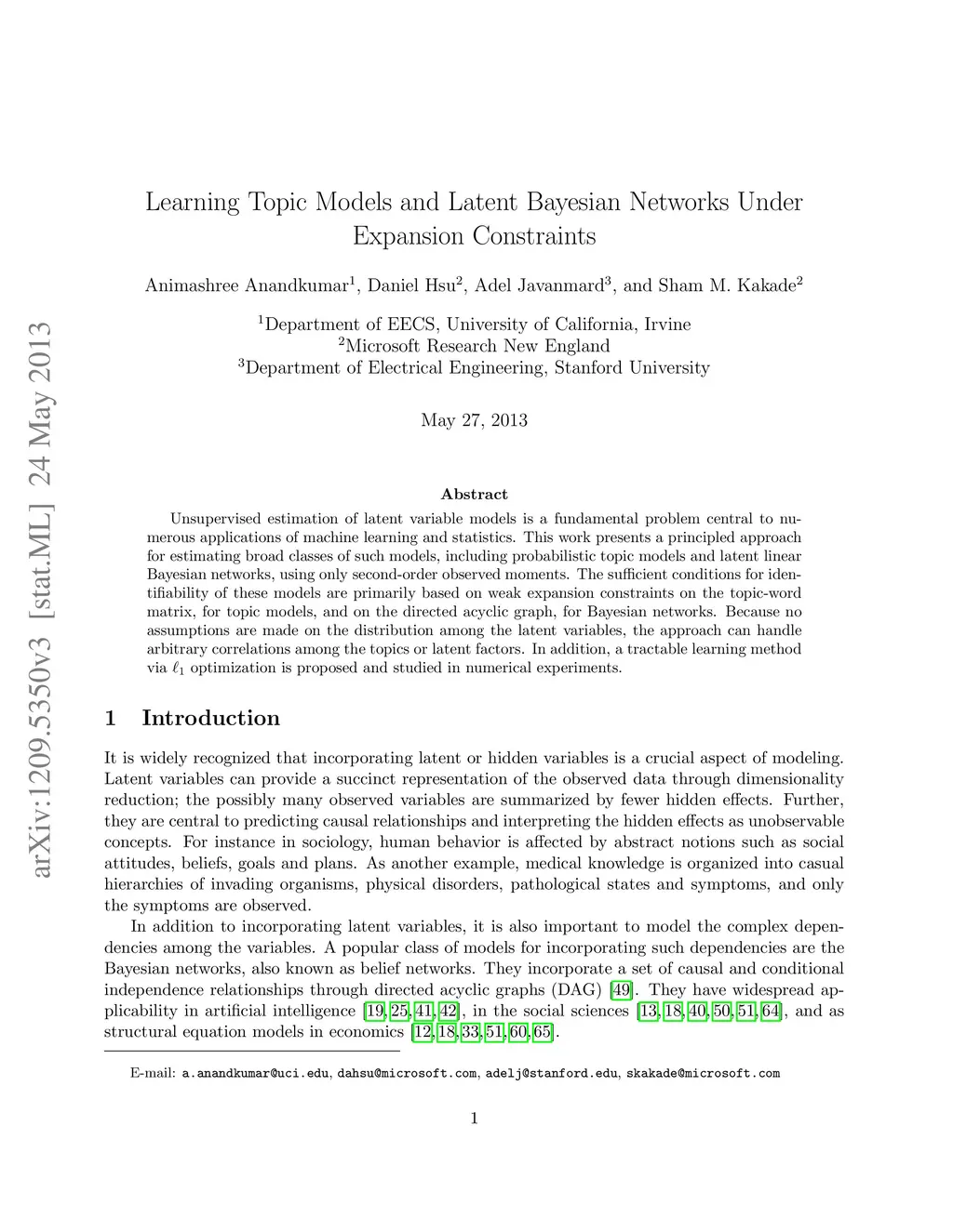 Learning Topic Models and Latent Bayesian Networks Under Expansion
