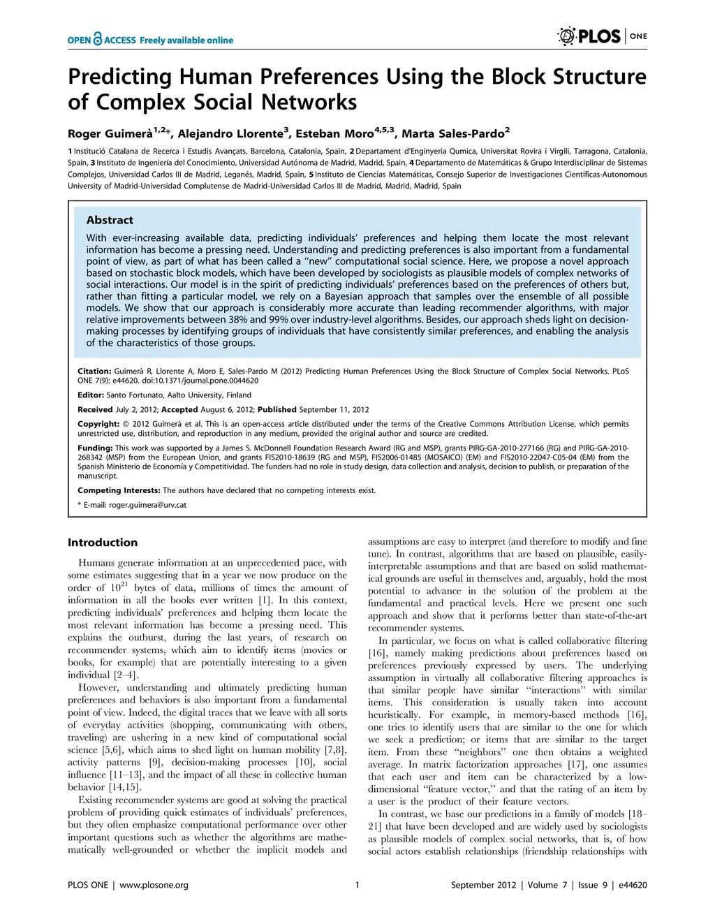 Predicting human preferences using the block structure of complex social