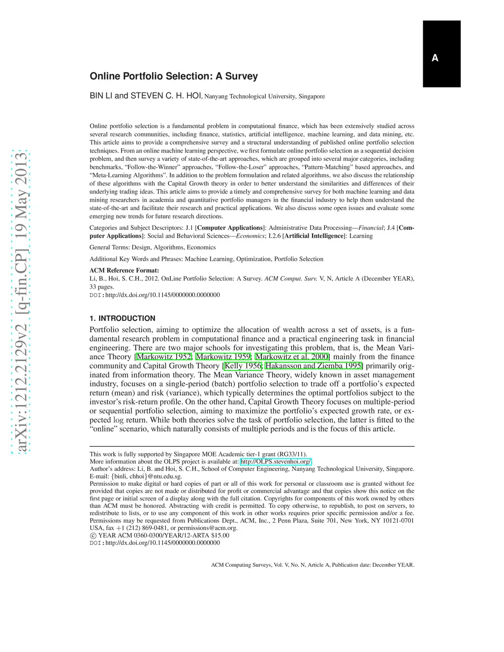Online Portfolio Selection: A Survey
