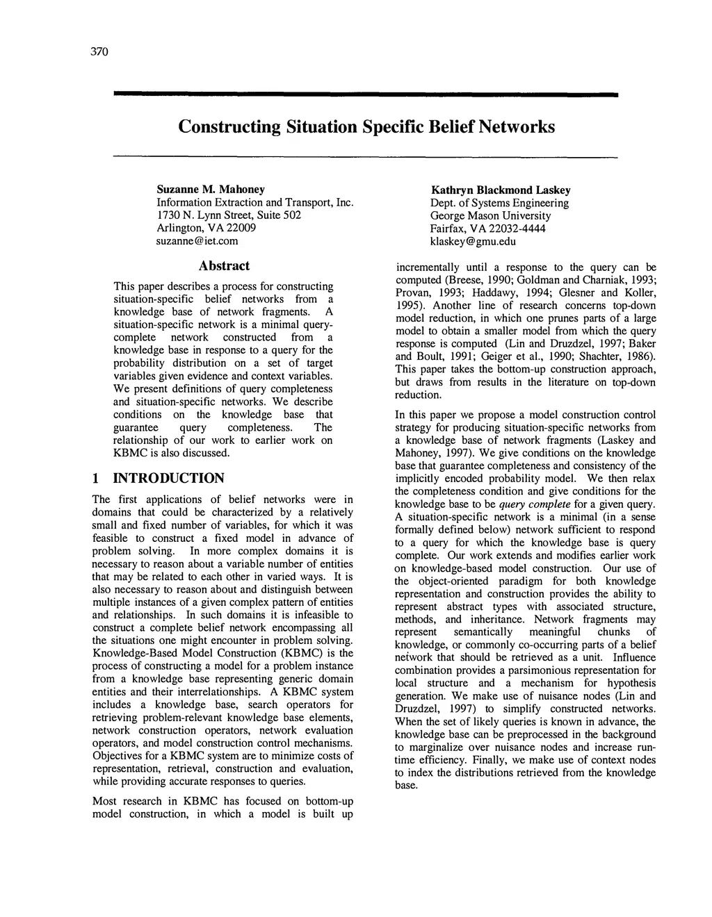 Constructing Situation Specific Belief Networks