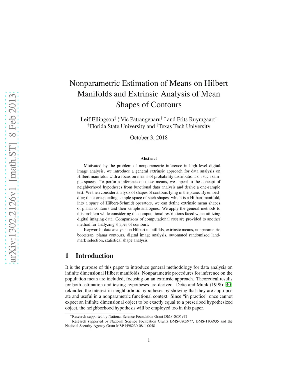 Motivated by the problem of nonparametric inference in high level digital image analysis, we introduce a general extrinsic approach for data analysis on Hilbert manifolds with a focus on means of probability distributions on such sample spaces. To perform inference on these means, we appeal to the concept of neighborhood hypotheses from functional data analysis and derive a one-sample test. We then consider analysis of shapes of contours lying in the plane. By embedding the corresponding sample space of such shapes, which is a Hilbert manifold, into a space of Hilbert-Schmidt operators, we can define extrinsic mean shapes of planar contours and their sample analogues. We apply the general methods to this problem while considering the computational restrictions faced when utilizing digital imaging data. Comparisons of computational cost are provided to another method for analyzing shapes of contours.